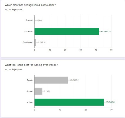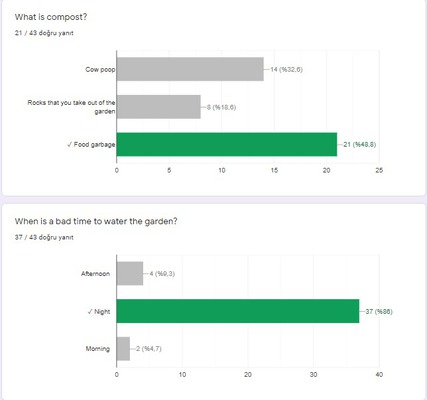 We learned what we can do for the health of plants. We exchanged ideas about watering plants and growing them healthy. With the teamwork, we put forward our ideas and this was a lot of fun.